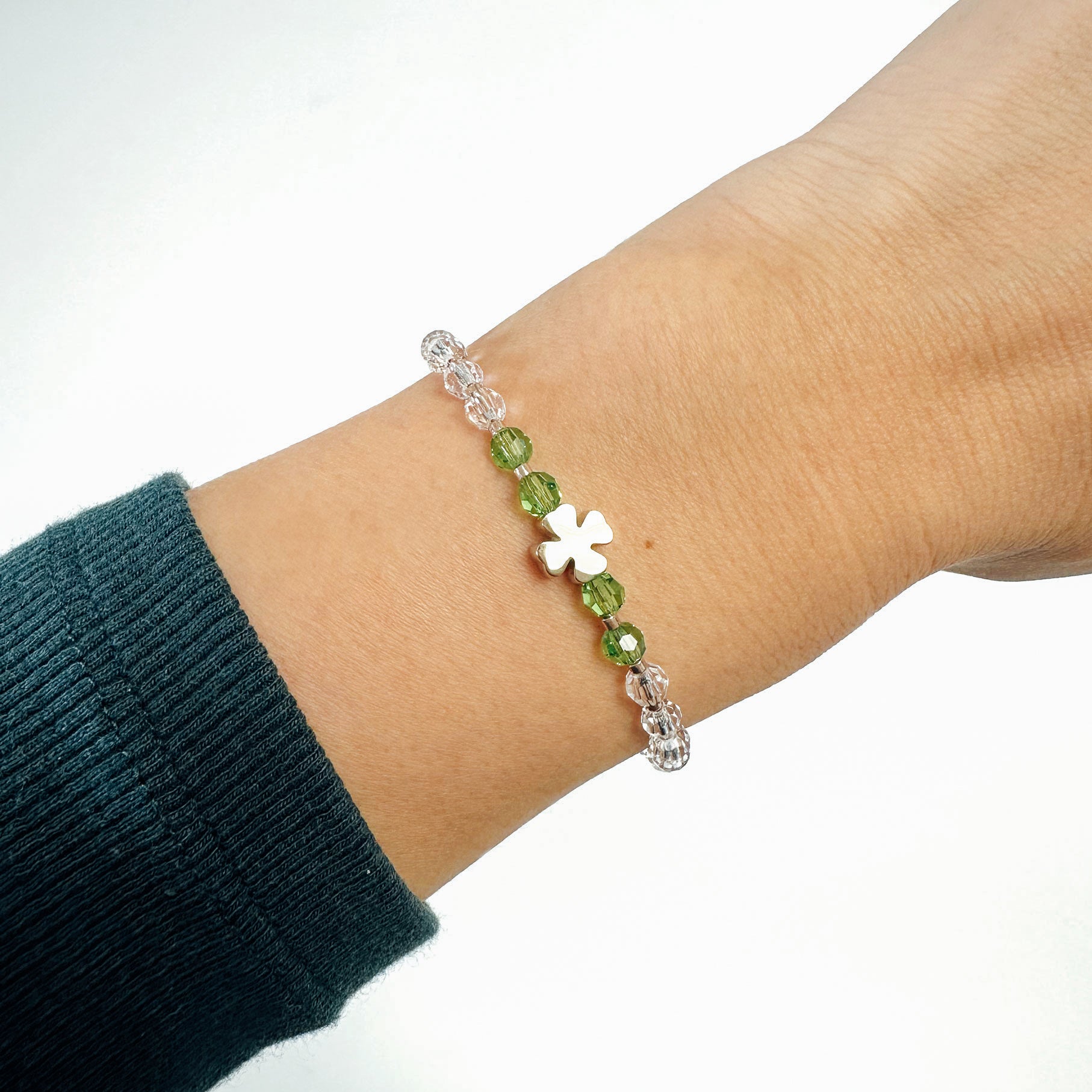 Handgefertigt aus hochwertigen Preciosa-Glasperlen und aus wasserdichtem Edelstahl. Tragen Sie es einzeln für eine elegante Note oder als Teil unseres Lucky Charm Armbandsets.