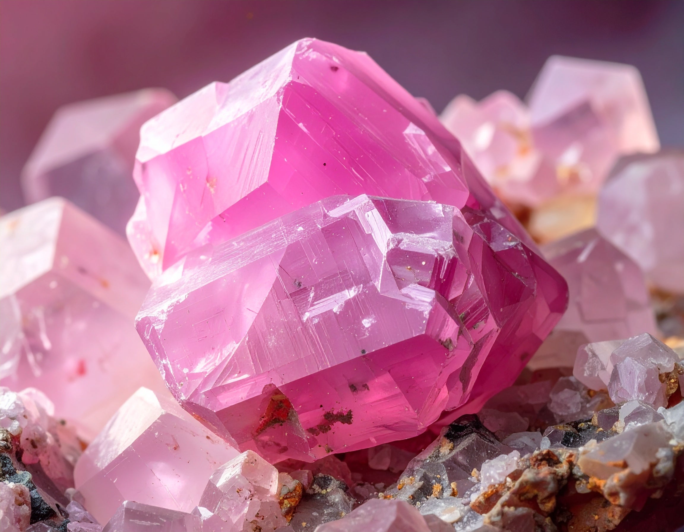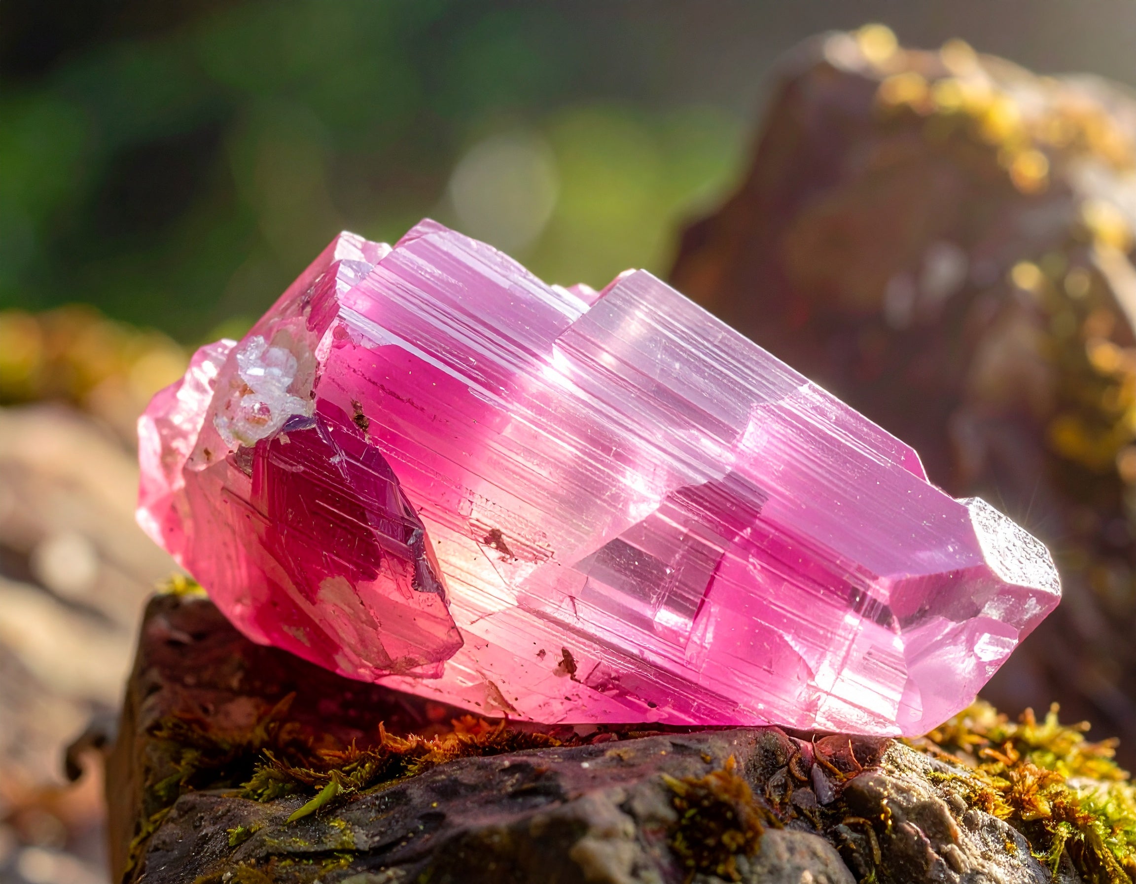 A semi-precious gemstone known for its vibrant pink color, which can range from pale light pink to deep, rich shades.