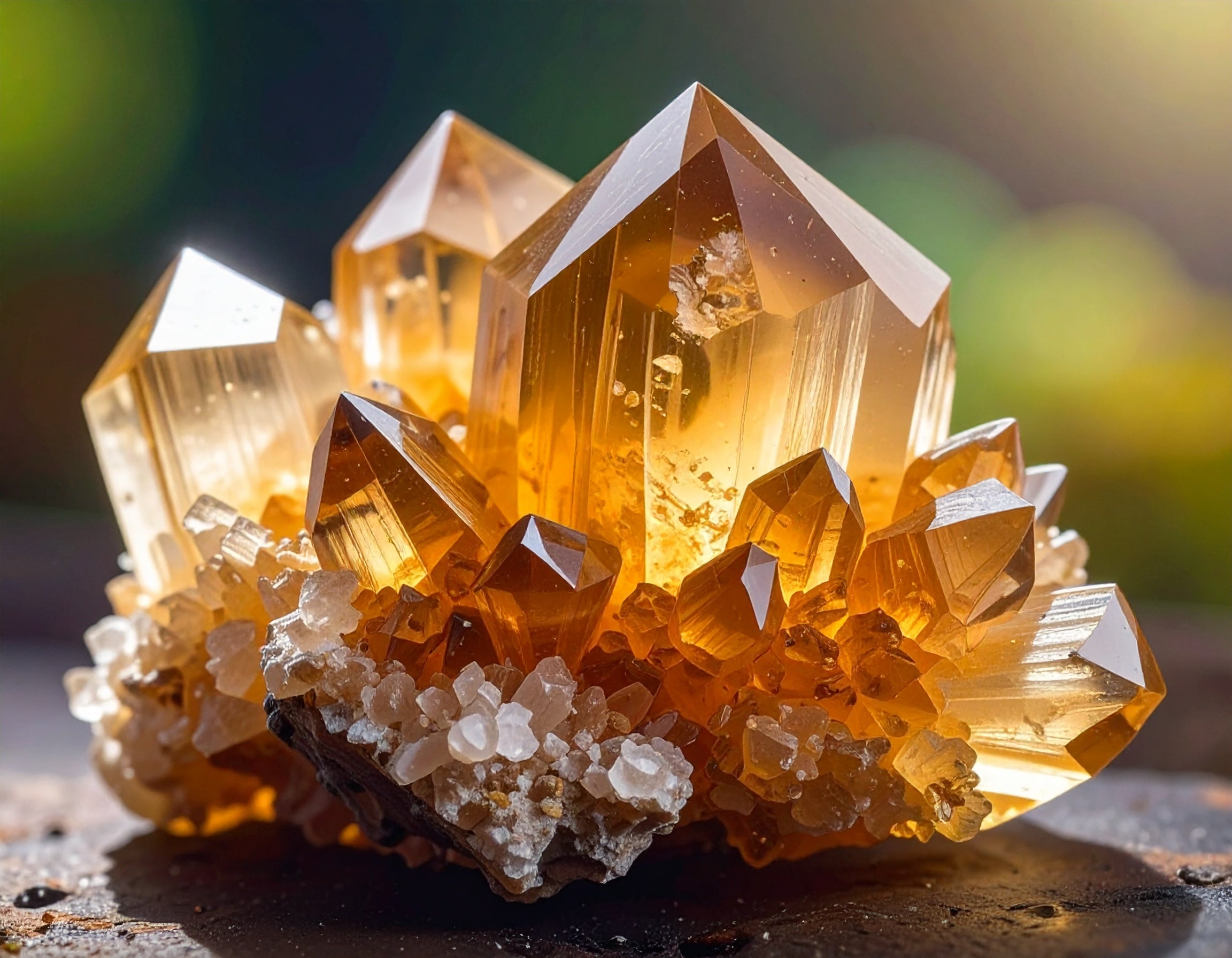 A semiprecious stone, type of quartz, known for its various shades from light yellow to dark honey color.