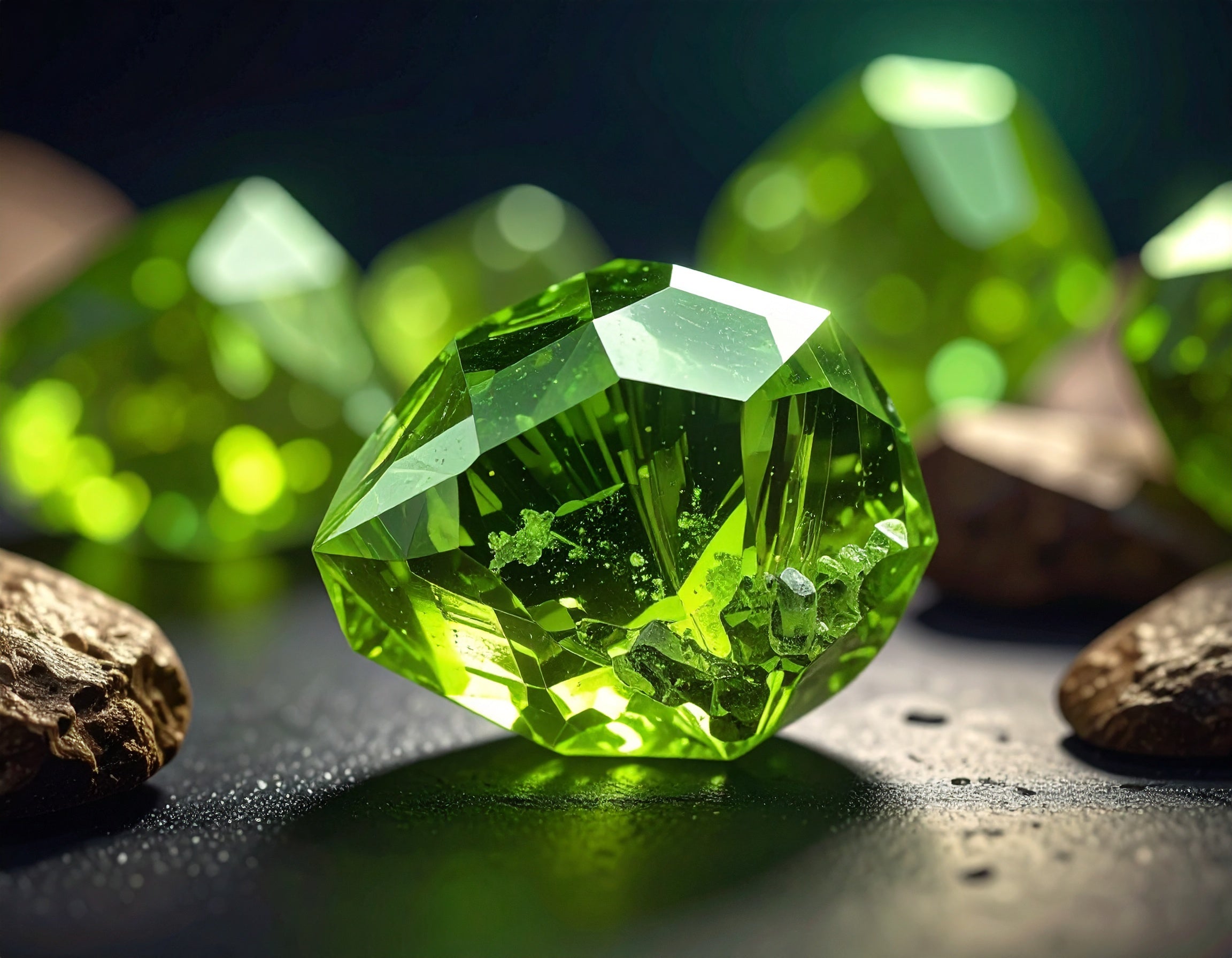 A special gem that is always green. The color comes from tiny amounts of iron inside it.