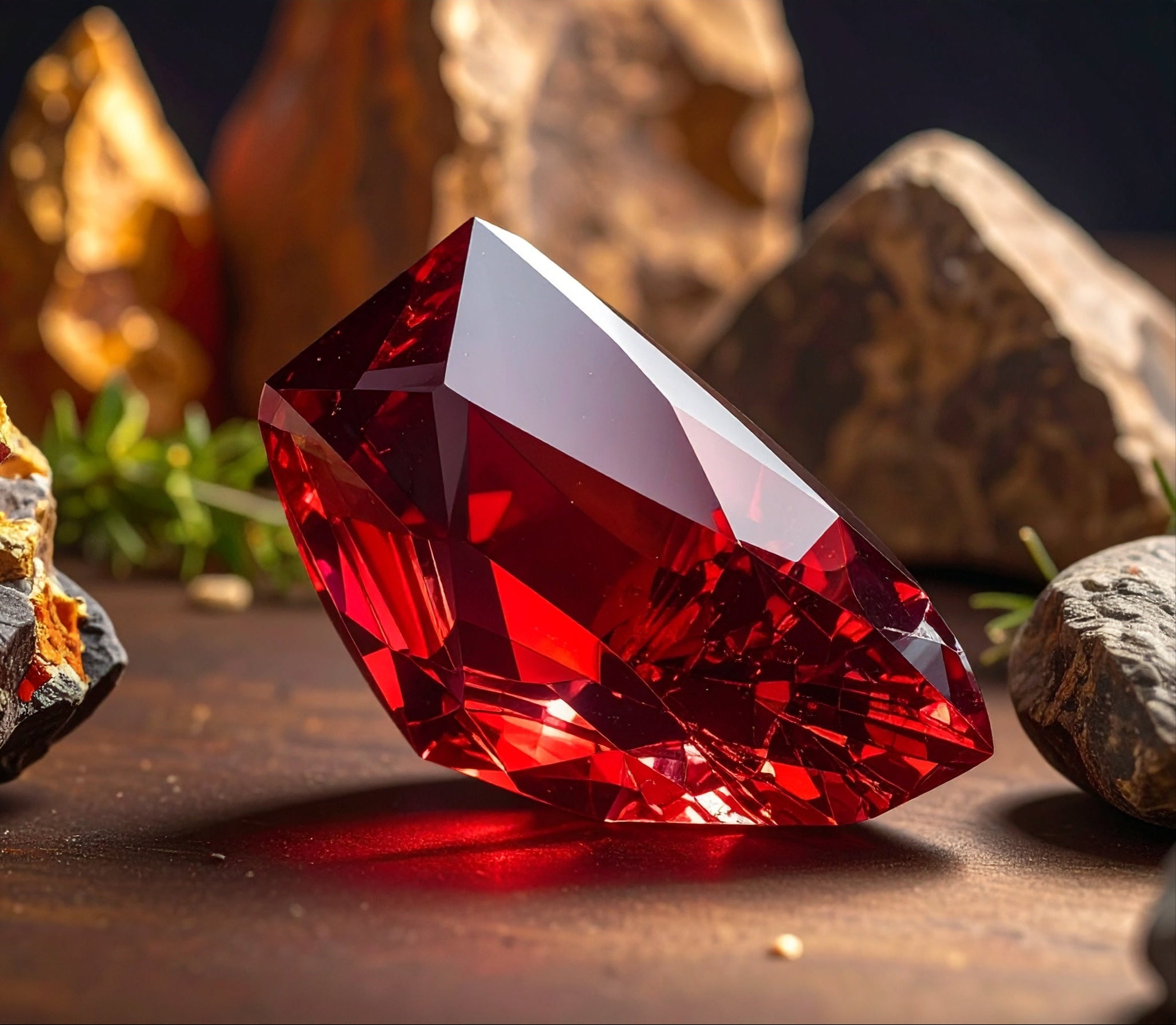 A vibrant, dark red gemstone known for its exceptional brilliance and durability.