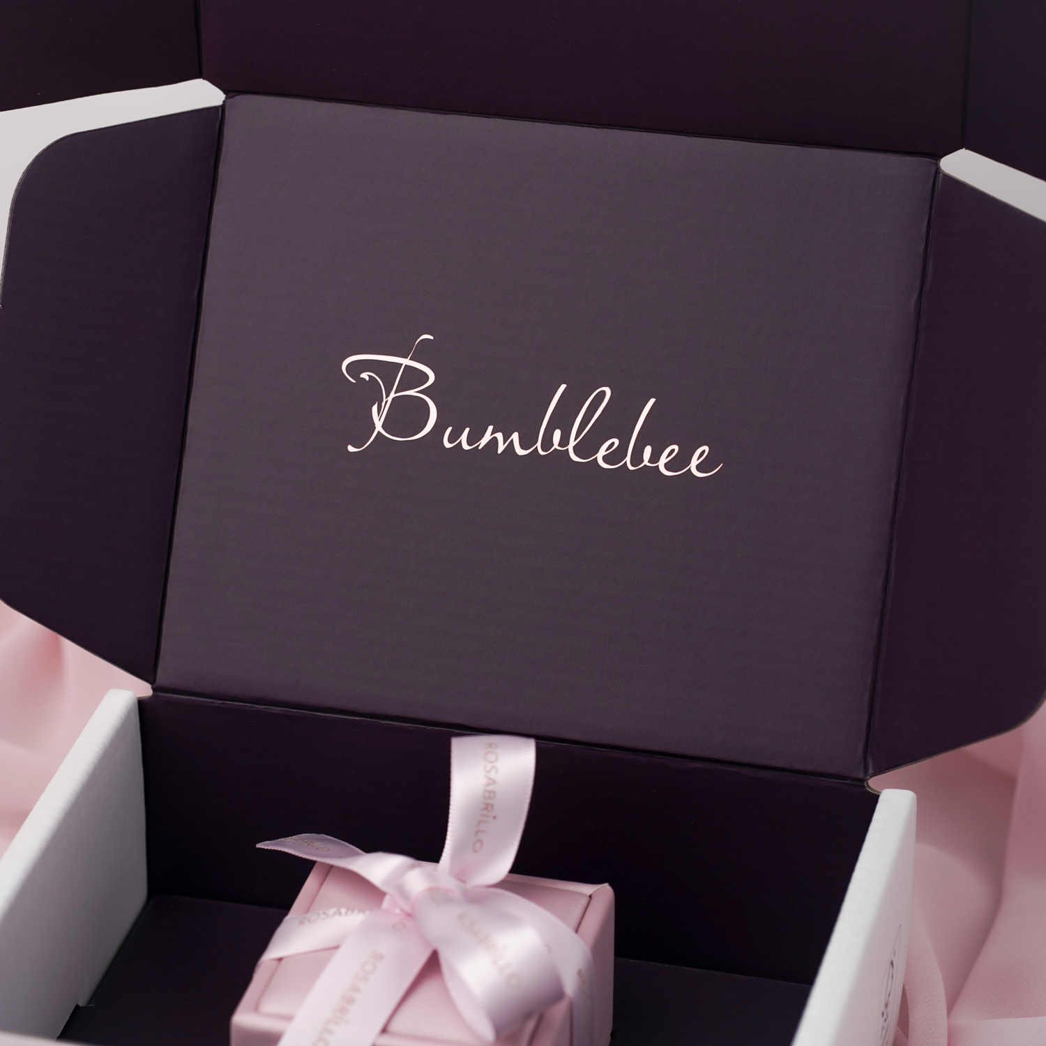 Rosabrillo shipping box has a sleek and sophisticated design. The outside is simple and white, but you'll find a deep purple inside when you open it.